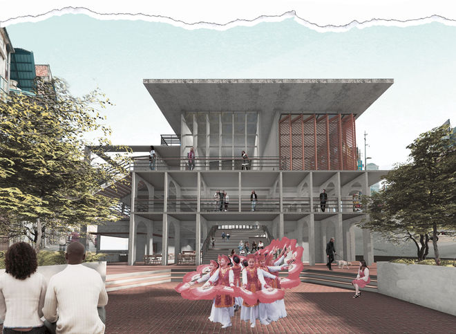 An intention is then derived from the current typology of streets and their purpose of facilitating more than movement. A spiral into space pursues the idea of allowing street to extend into space by incorporating the typology of 5-foot walkways that blur the boundary between in and out. The main draw for the building will be facilitated through a functional programme and the performing arts will play a supplementary role to it. This increased contact between the utilitarian and recreational will normalize the spontaneity found within performing arts, celebrating public life even on a street scale.